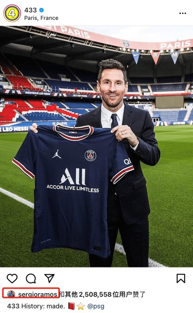 而在梅西加盟巴黎之后,有权威媒体在社交账号上发布了一张拉莫斯与梅西从死敌变队友的趣图,拉莫斯本人看到之后,也非常认可的点了赞。不仅仅如此,拉莫斯还点赞了梅西展示巴黎球衣的照片。显然,“水爷”也十分欢迎梅西的到来。