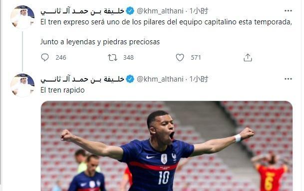这名王室成员近日在推特上宣布梅西和巴黎的谈判已经完成,今天他又宣布姆巴佩将留队。