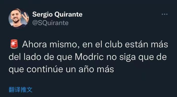 该记者表示,皇马目前倾向于不再和莫德里奇续约,而不是再续约1年。