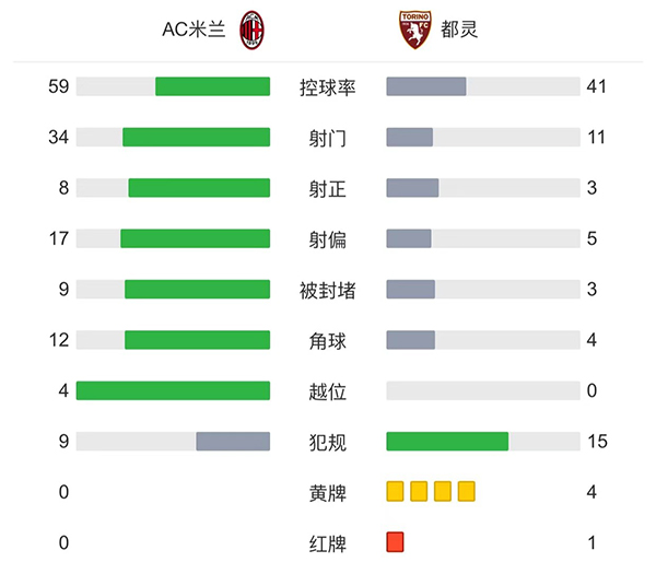 全场比赛结束,最终AC米兰主场0-1不敌都灵。