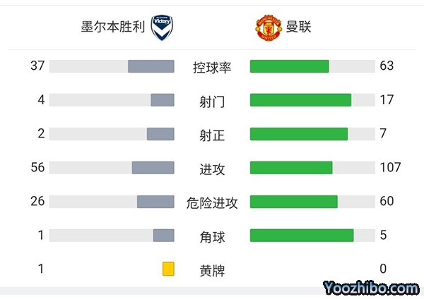 全场比赛结束,最终曼联4-1逆转墨尔本胜利。